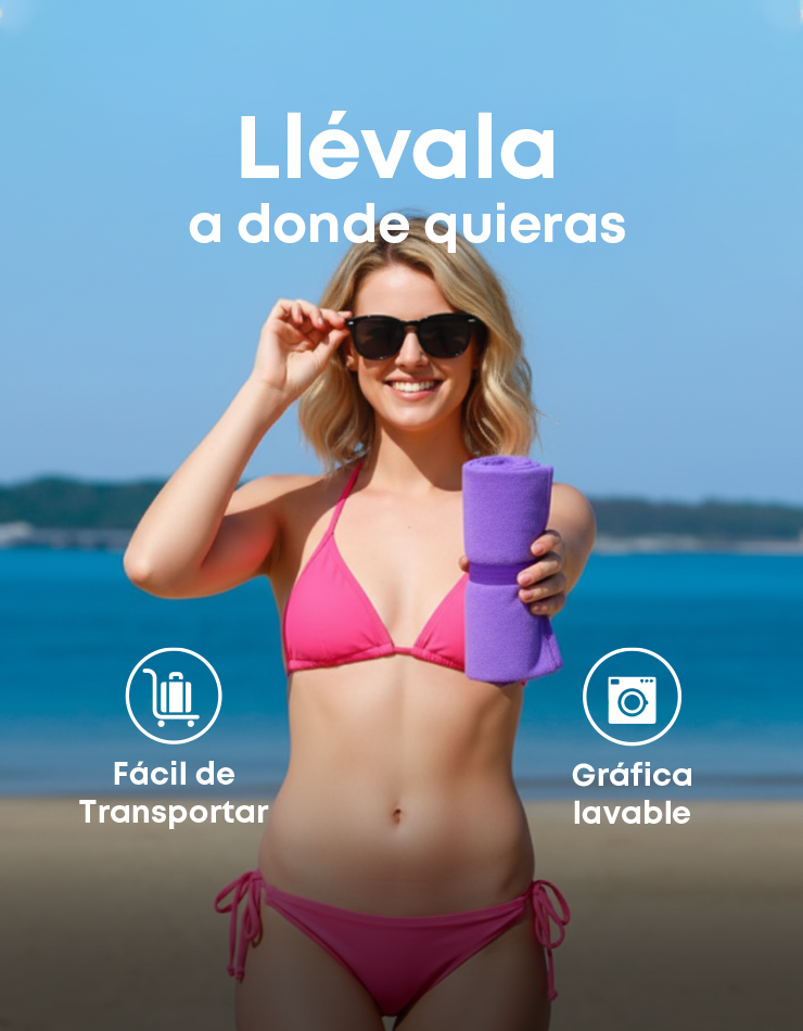 Su textura suave, junto con rápido secado y alta absorción, las hace prácticas para playa, piscina o exteriores. Incorporan diseño corporativo personalizado, con gráfica de una cara, para optimizar los tiempos de entrega, y costura perimetral, asegurando un acabado profesional y duradero.